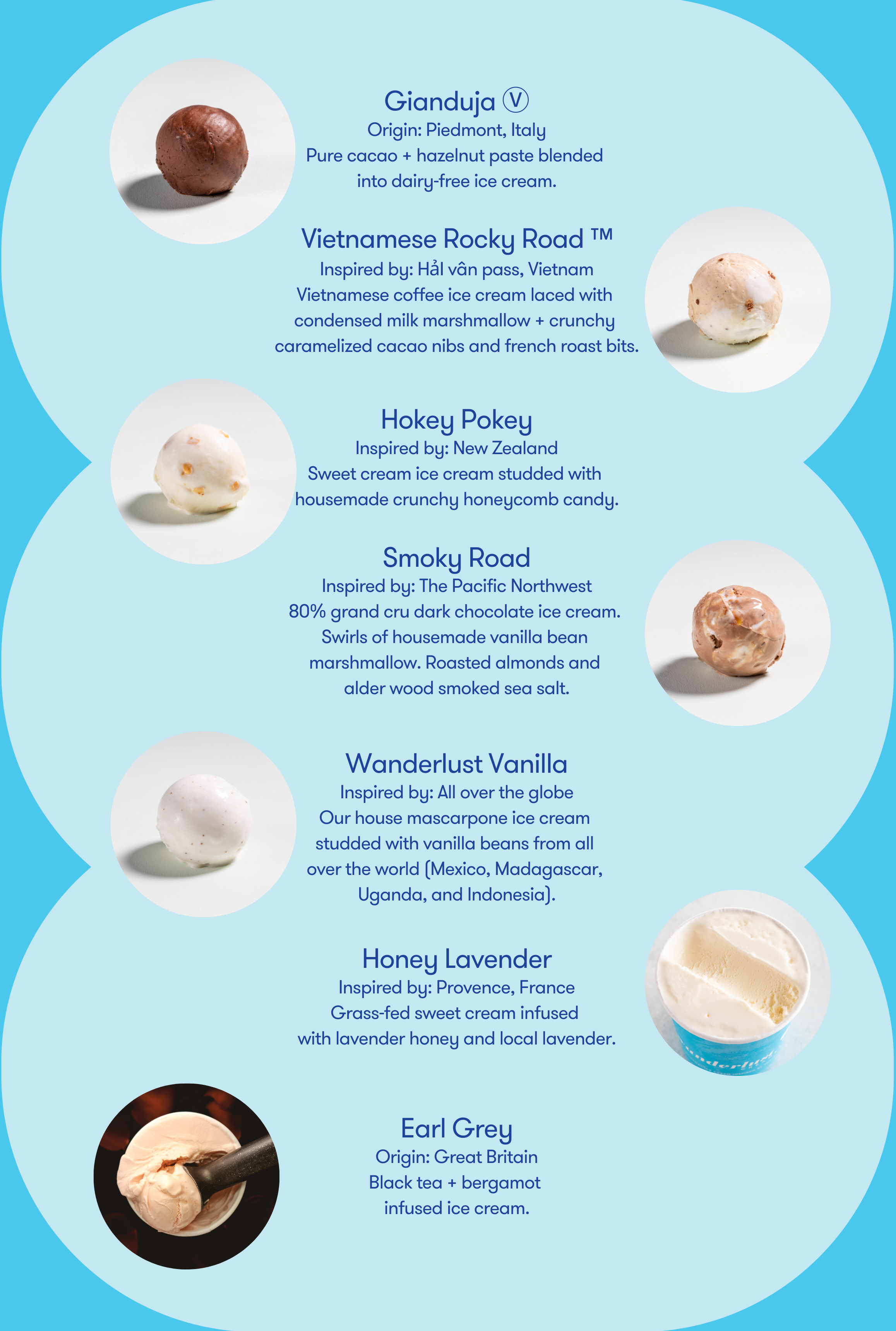 Hand-rolled waffle cones can be added for $1.25 each; choose from 3 flavors listed below